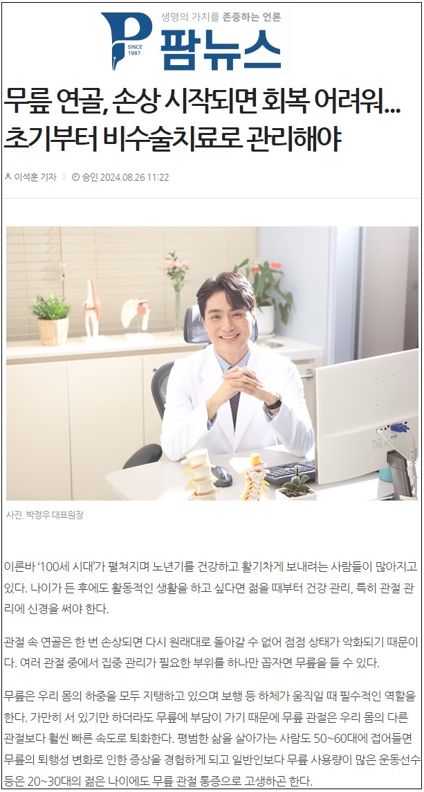 무릎 연골, 손상 시작되면 회복 어려워...초기부터 비수술치료로 관리해야