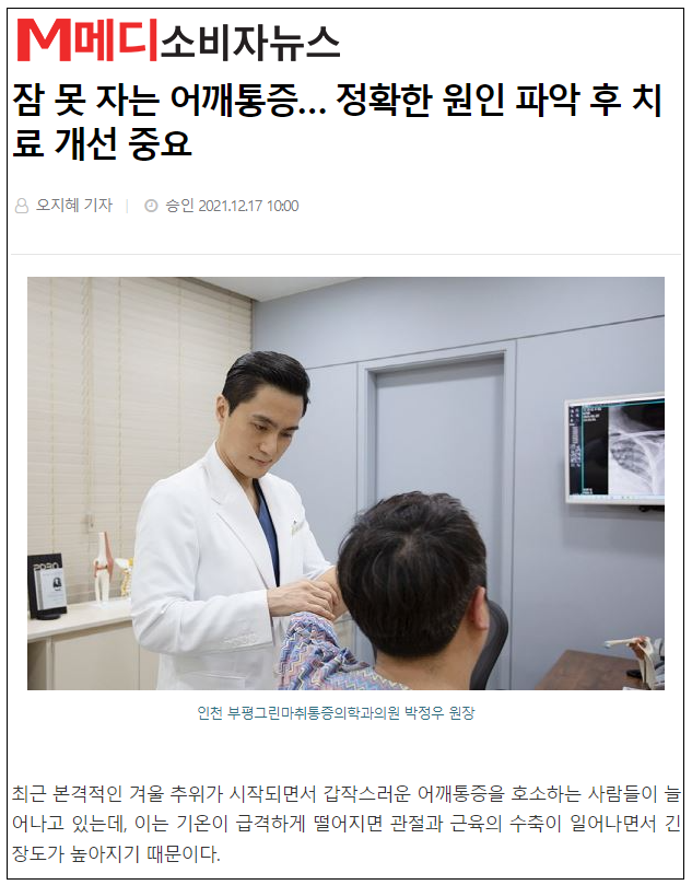 잠 못 자는 어깨통증... 정확한 원인 파악 후 치료 개선 중요