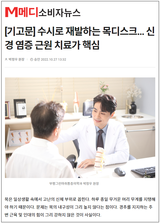 수시로 재발하는 목디스크...신경 염증 근원 치료가 핵심