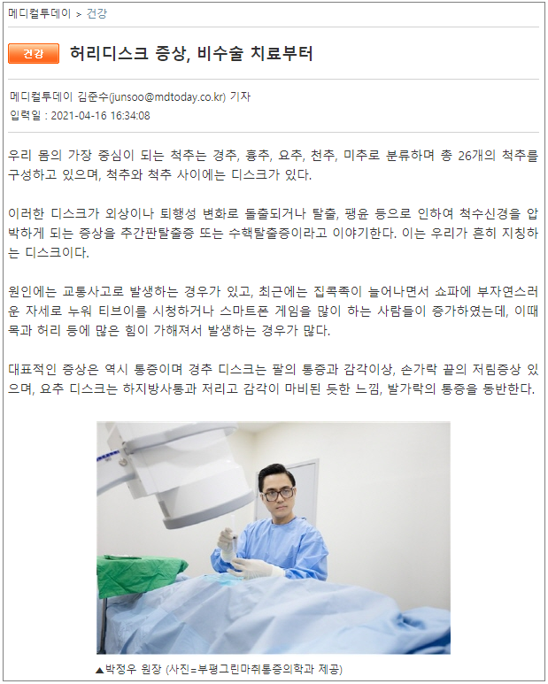 부평 정형외과·마취통증의학과 전문의 2인 협진 진료하는 부평그린마취통증의학과는