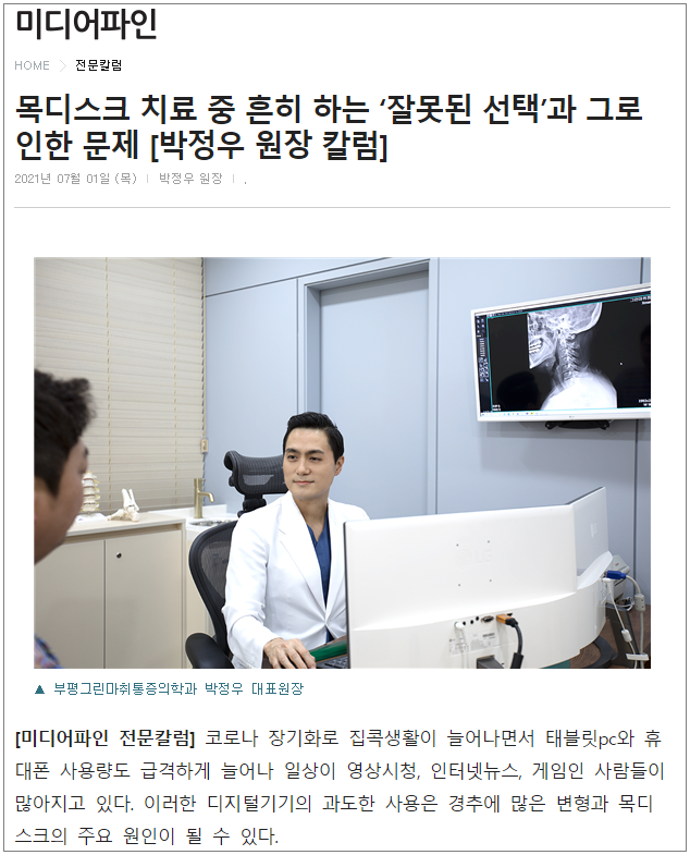 부평그린마취통증의학과는 비수술 중점 치료로 환자분들이 목디스크 통증으로부터