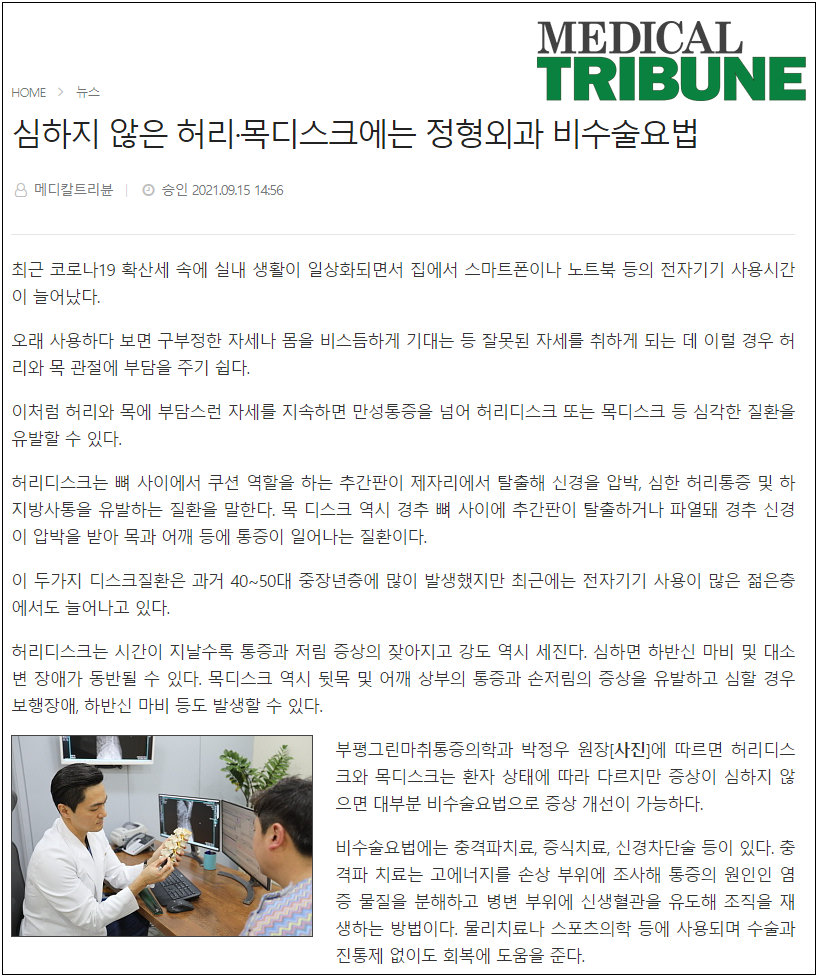 심하지 않은 허리·목디스크에는 정형외과 비수술요법