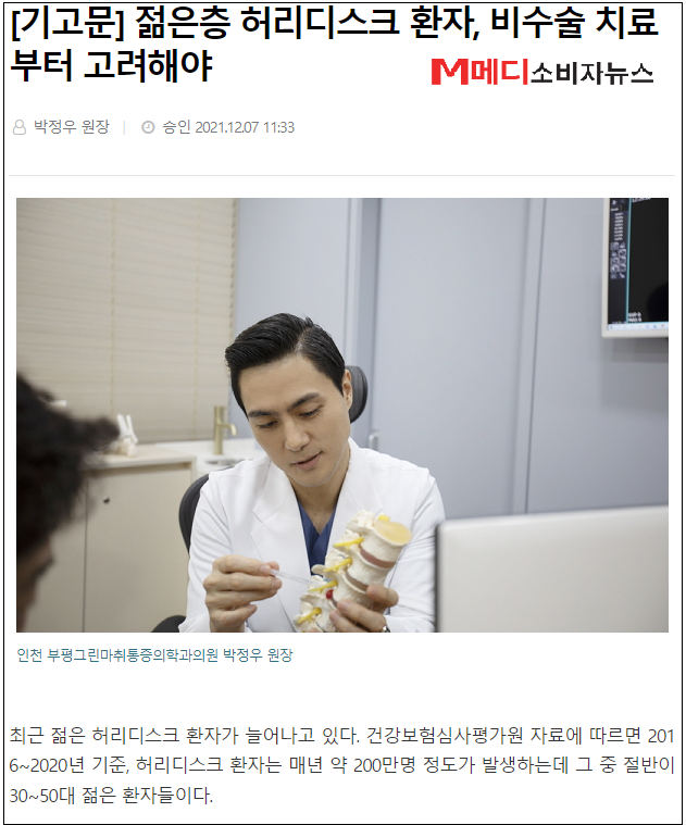 젊은층 허리디스크 환자, 비수술 치료부터 고려해야