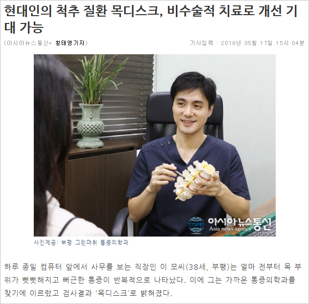 [뉴스] 현대인의 척추 질환 목디스크, 비수술적 치료로 개선 기대 가능