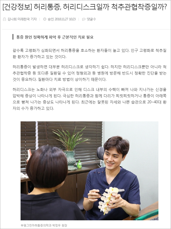 박정우원장님의 허리통증에 대한 의학칼럼을 소개합니다 :)