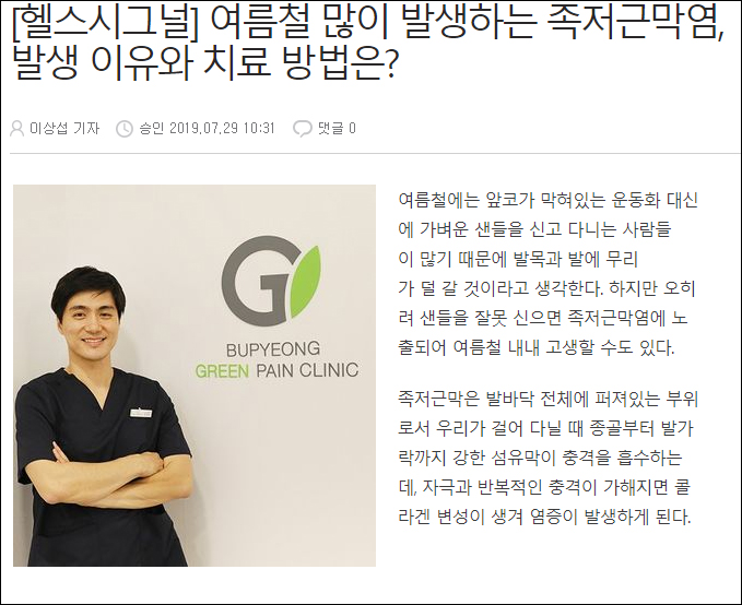 만약 족저근막염이 의심된다면 부평그린통증의학과를 찾아