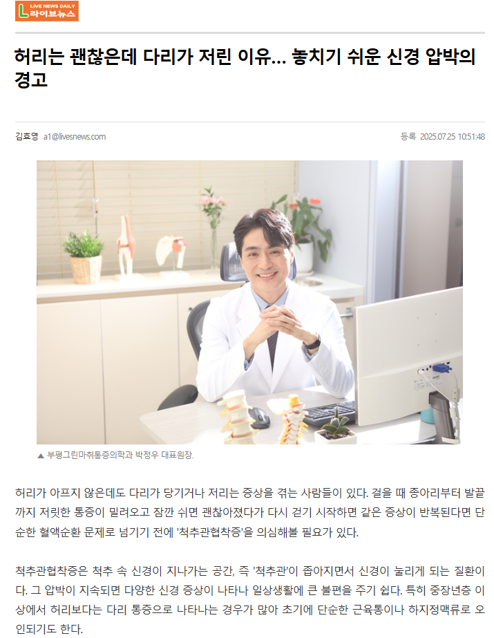 허리는 괜찮은데 다리가 저린 이유… 놓치기 쉬운 신경 압박의 경고