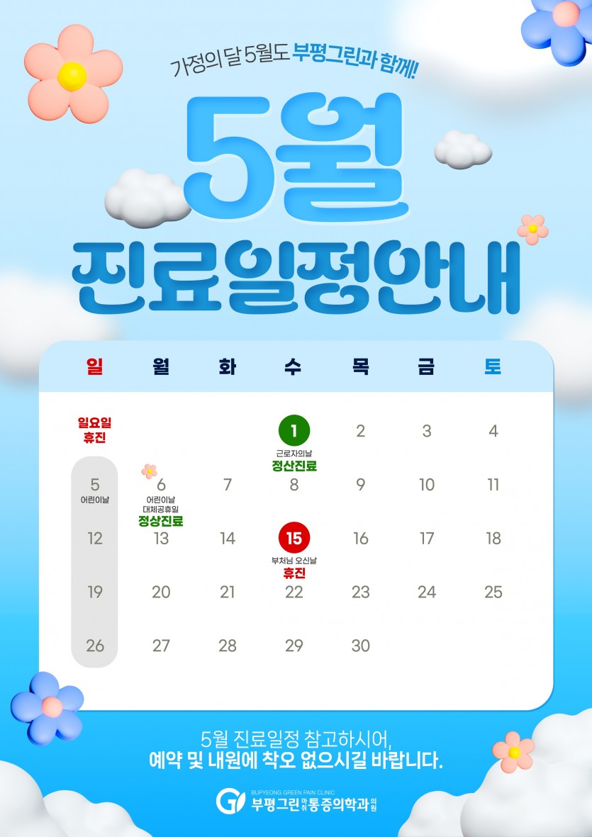 5월 진료일정 안내드립니다
