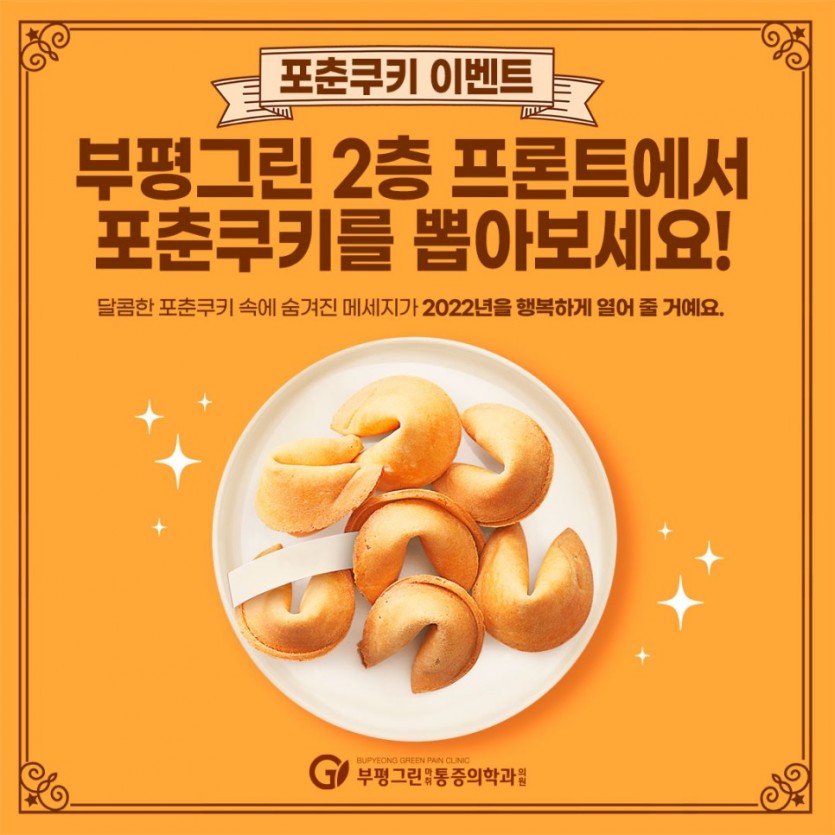 [공지사항] 부평그린에서 준비한 포춘쿠키 이벤트 많은 관심과 참여 바랍니다. 작성일 : 2022.08.29 부평그린마취통증의학과 댓글 : 0 조회 : 1,990 부평그린에서 준비한 포춘쿠키 이벤트 많은 관심과 참여 바랍니다.
