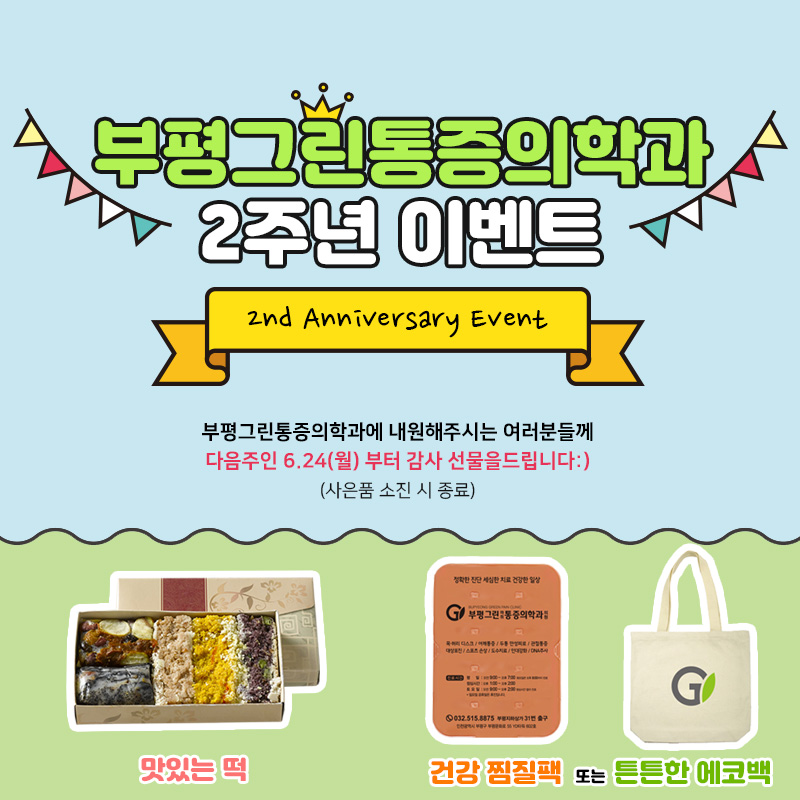 부평그린통증의학과 2주년 축하 이벤트 안내!
